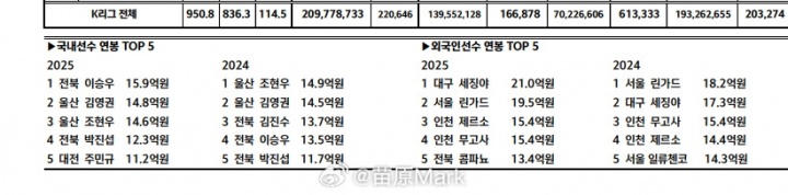 K联赛2025年工资情况:
